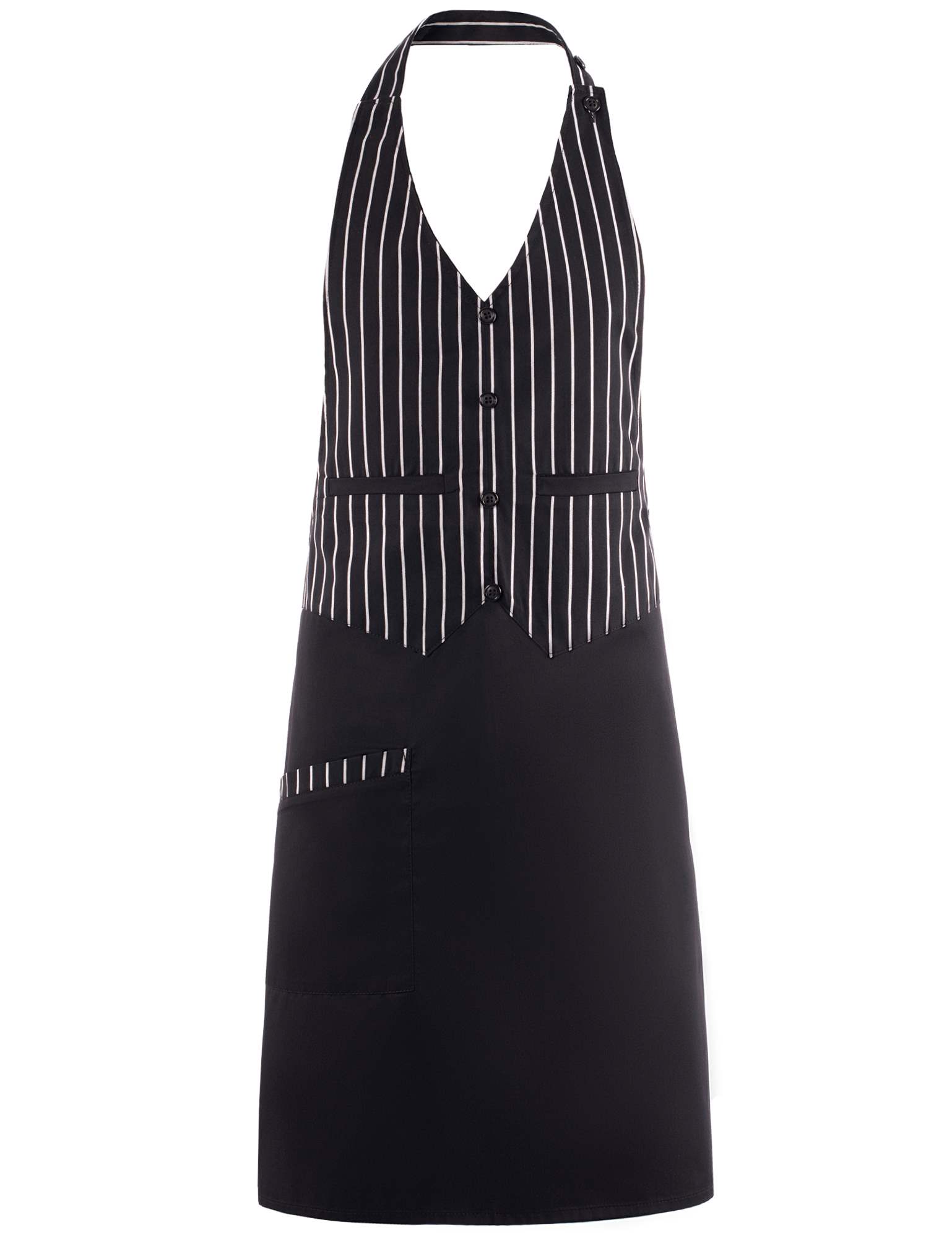 Ποδιά λαιμού "V" με ριγέ ύφασμα στο πάνω μέρος. Δύο κουμπιά στο λαιμό για ρύθμιση. Δύο τσέπες φιλέτο μπροστά. Μια τσέπη μεγάλη δεξιά. Ελληνικό προϊόν. 200gsm & 245gsm | 65% pol - 35% cot