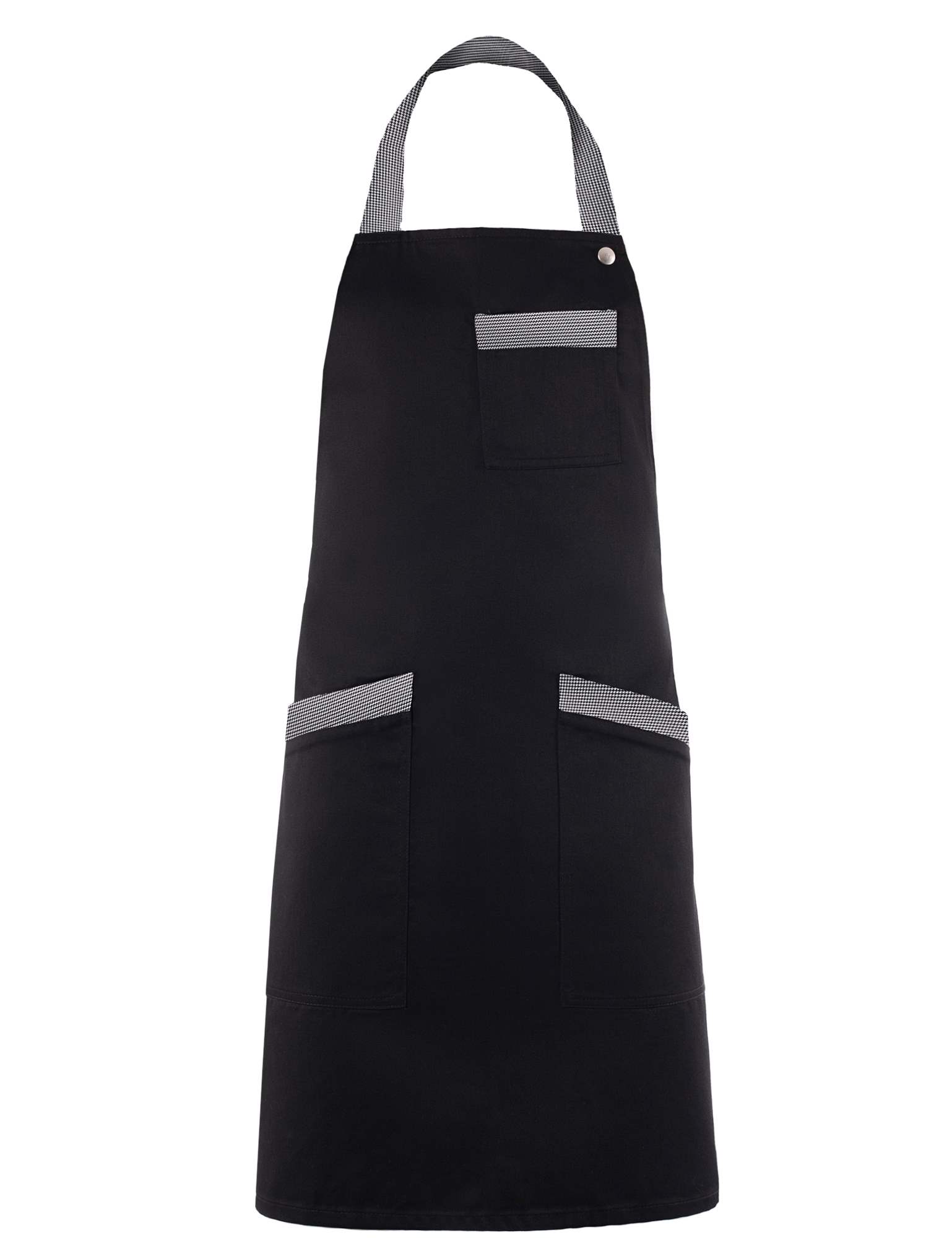 Ποδιά λαιμού με καρό λεπτομέρειες και δύο μεταλλικά τρούκ για εύκολη ρύθμιση. Τρεις τσέπες, μία στο στήθος και δύο στους γοφούς δεξιά και αριστερά. Ελληνικό προϊόν. 245gsm | 65% pol - 35% cot