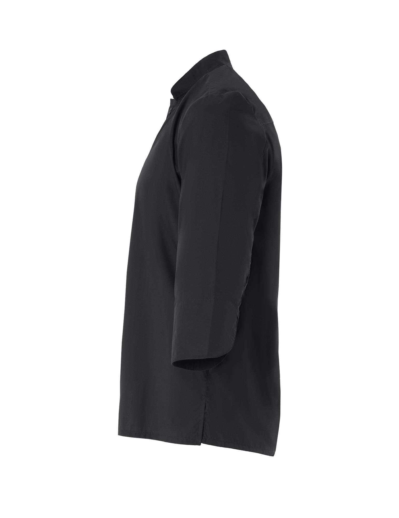 Πουκάμισο UNISEX με γιακά τύπου ΜΑΟ και μανίκια 3/4. Με ωμίτη, μανσέτες και σκίσιμο στο πλάι. Κλείνει μπροστά με κουμπιά. Αναδιπλούμενα μανίκια. Ελληνικό προϊόν. 115gsm | 65% pol - 35% cot