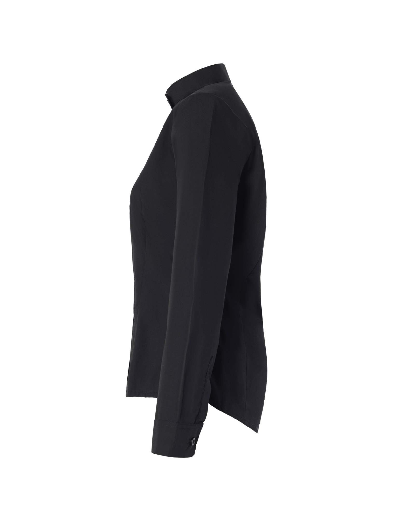 Πουκάμισο γυναικείο, εμβαζέ, μακρυμάνικο, με γιακά τύπου ΜΑΟ, ωμίτη και μανσέτες. Πένσες μπροστά και πίσω για καλύτερη εφαρμογή. Κλείνει μπροστά με κουμπιά. Ελληνικό προϊόν. 115gsm | 65% pol - 35% cot