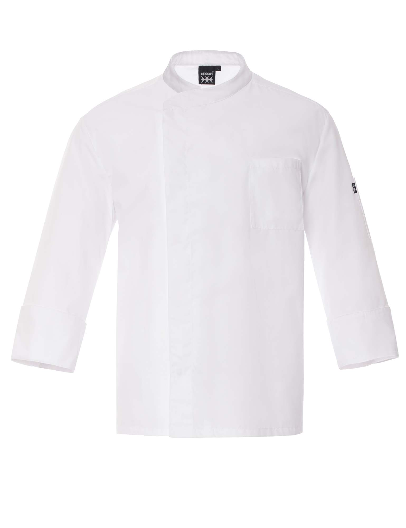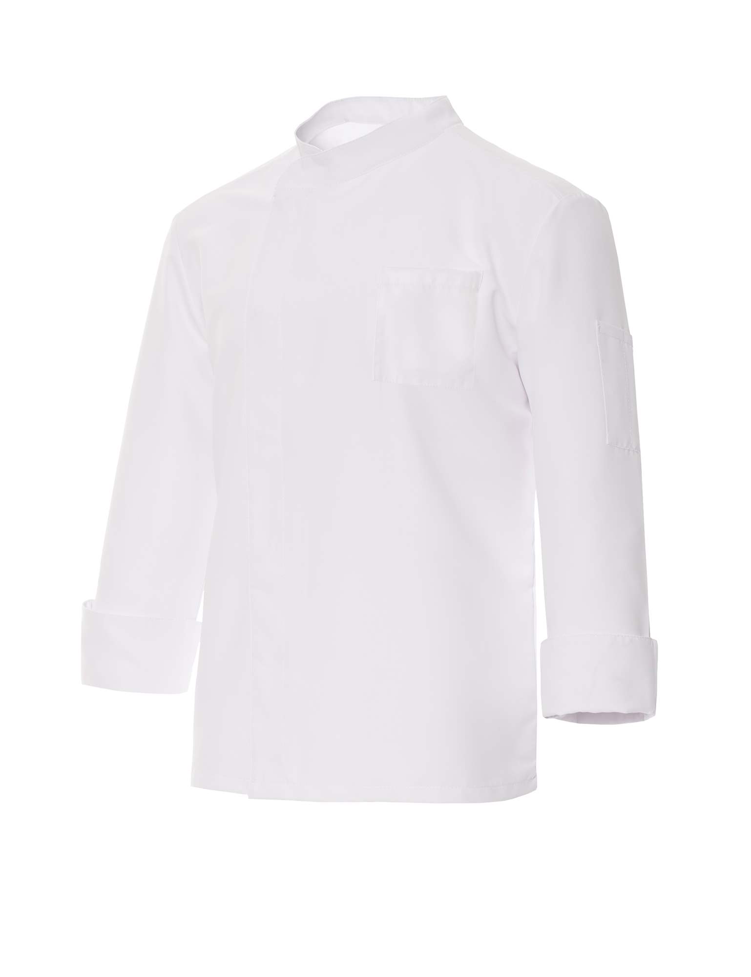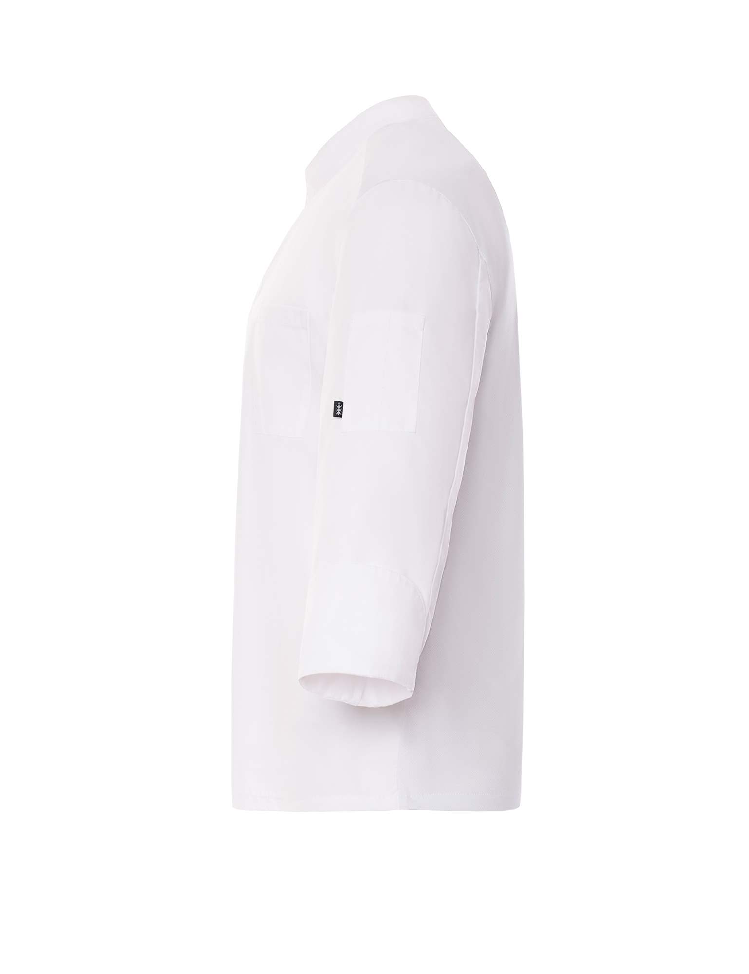 UNISEX μαγειρικό σακάκι Μ/Μ με διάτρητο πικέ ύφασμα σε όλη την πλάτη. Κλείνει μπροστά με τρούκ. Μία τσέπη μπροστά στο στήθος. Μία τσέπη στο αριστερό μανίκι. Γιακάς τύπου ΜΑΟ. Αναδιπλούμενα μανίκια. Ελληνικό προϊόν. 165gsm | 65% pol - 35% cot