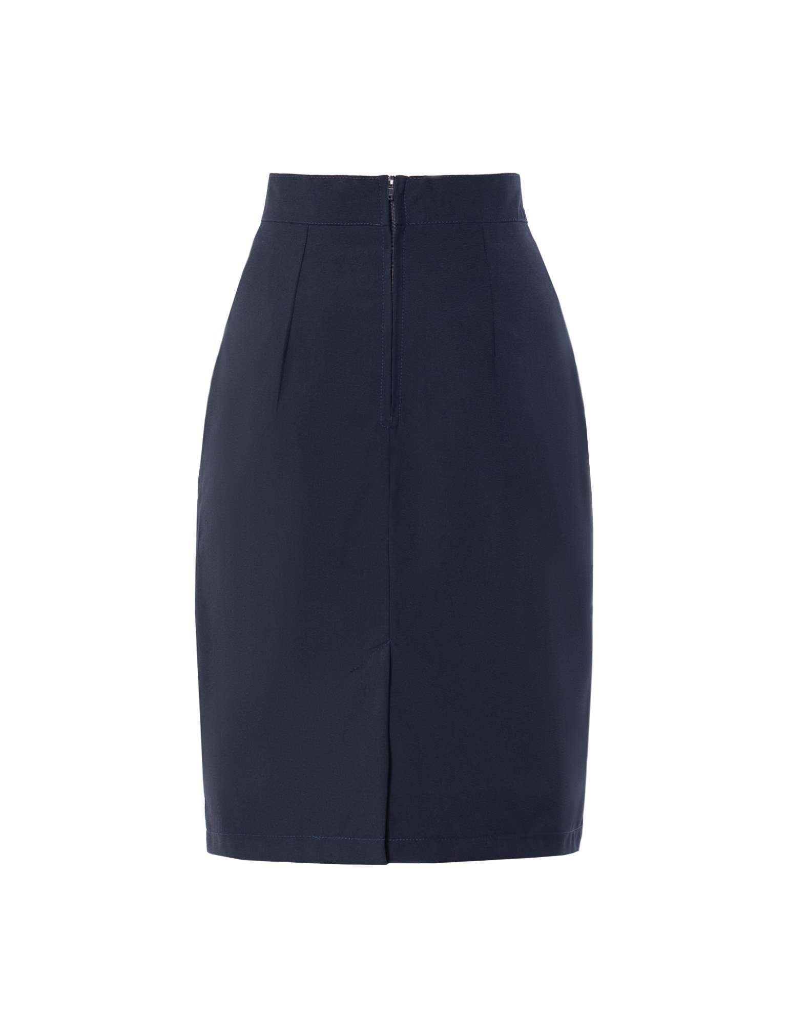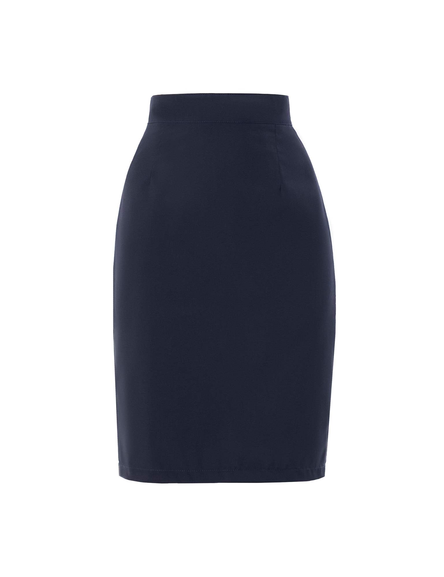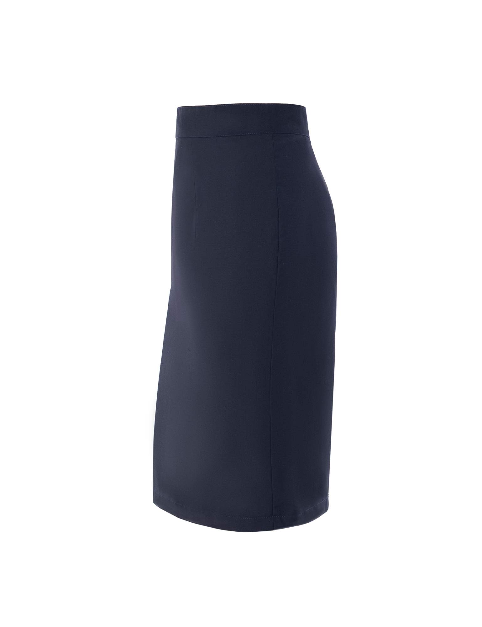 Φούστα γυναικεία με σκίσιμο πίσω. Πένσες για καλύτερη εφαρμογή μπροστά και πίσω. Κλείνει πίσω με φερμουάρ. Eλληνικό προϊόν. 180gsm | 65% pol - 35% viscose