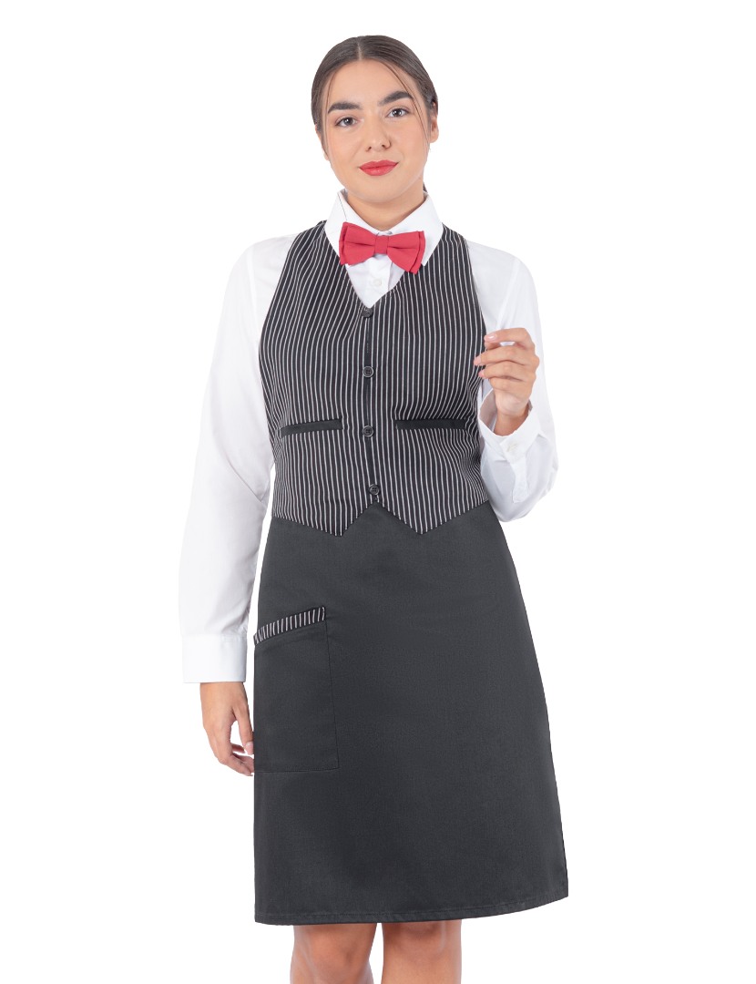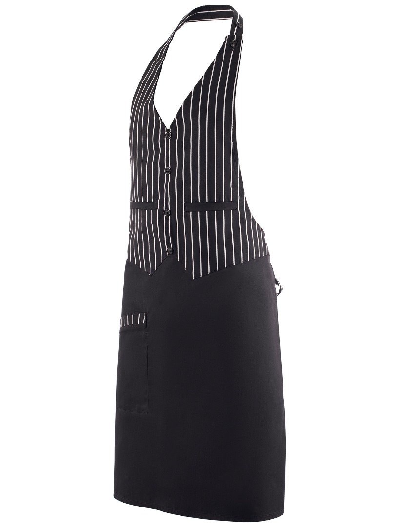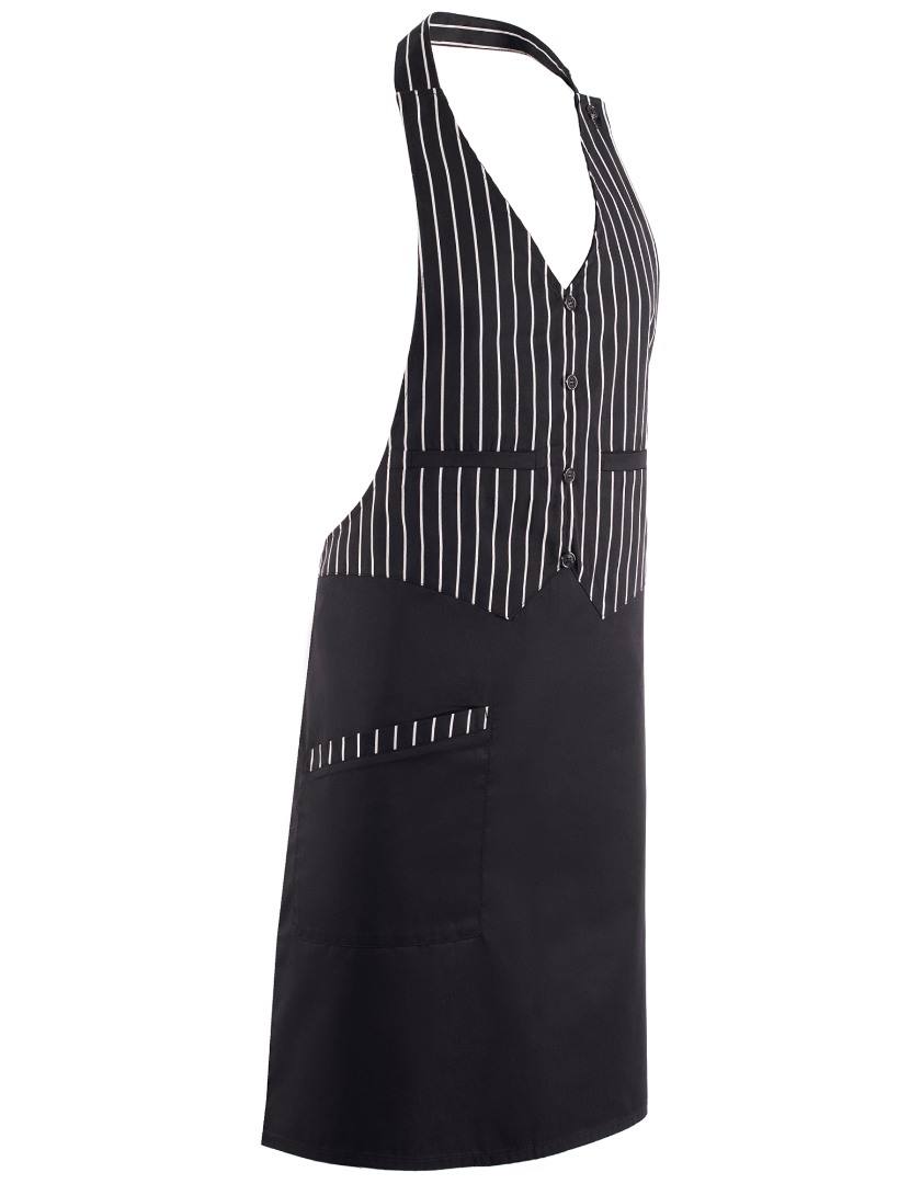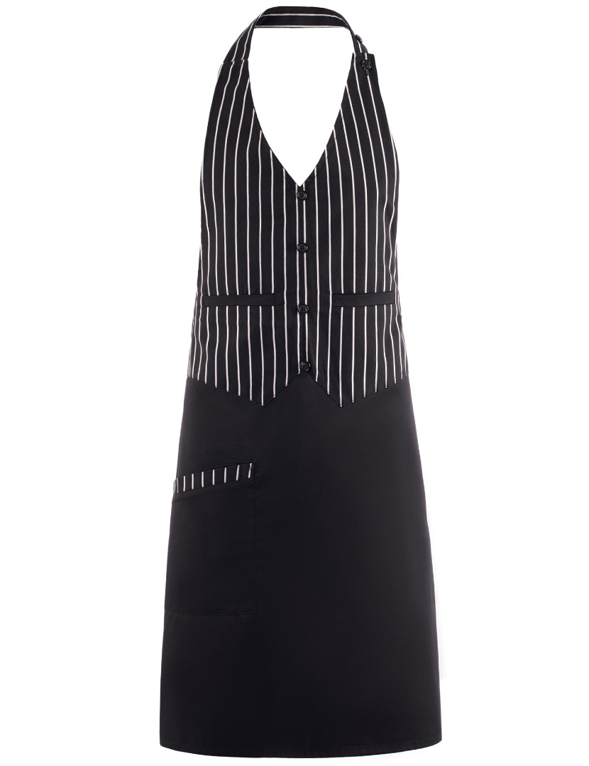 - Ποδιά λαιμού “V” με ριγέ ύφασμα στο πάνω μέρος.