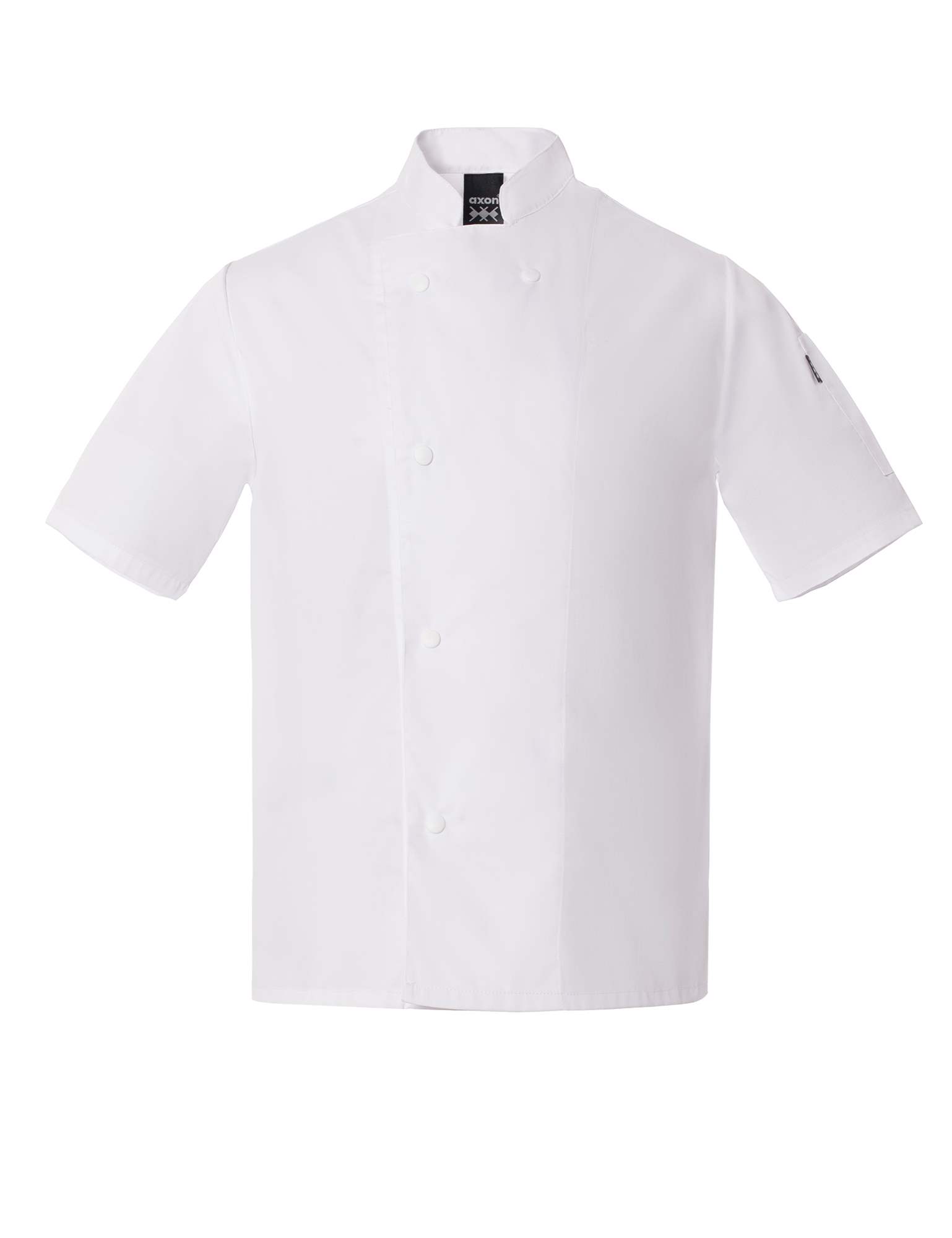 UNISEX μαγειρικό σακάκι Κ/Μ. Kλείνει μπροστά με τρούκ. Μία διπλή τσέπη στο αριστερό μανίκι. Γιακάς τύπου ΜΑΟ. Ελληνικό προϊόν. 165gsm | 65% pol - 35% cot