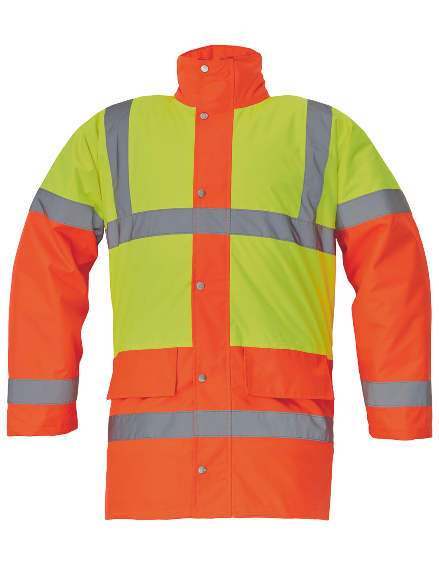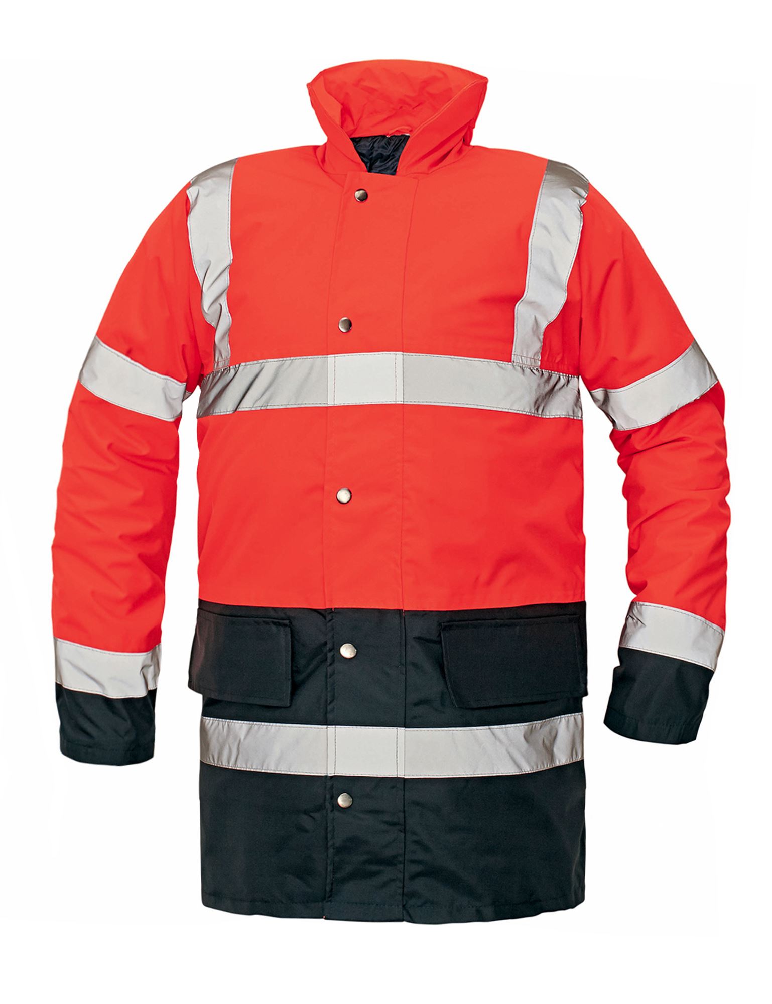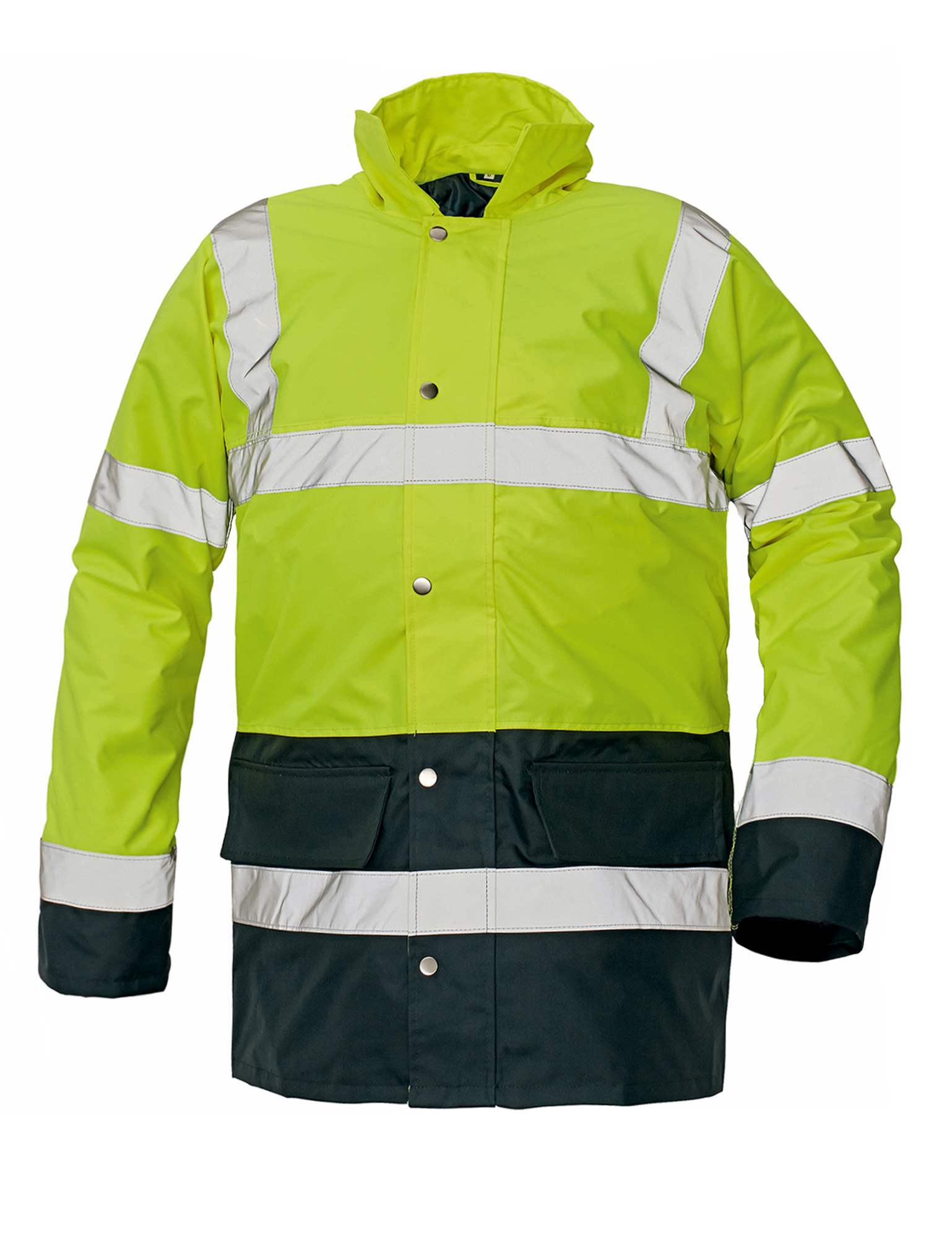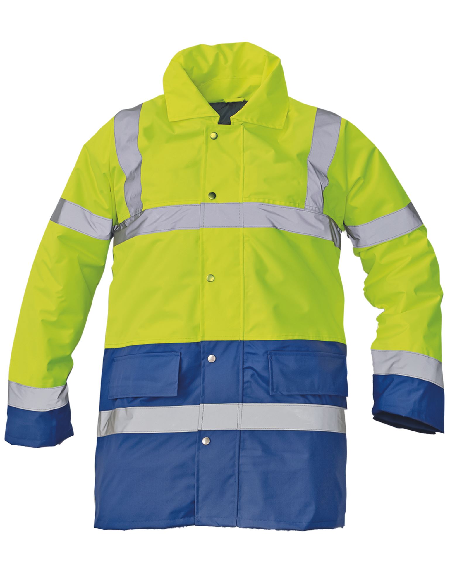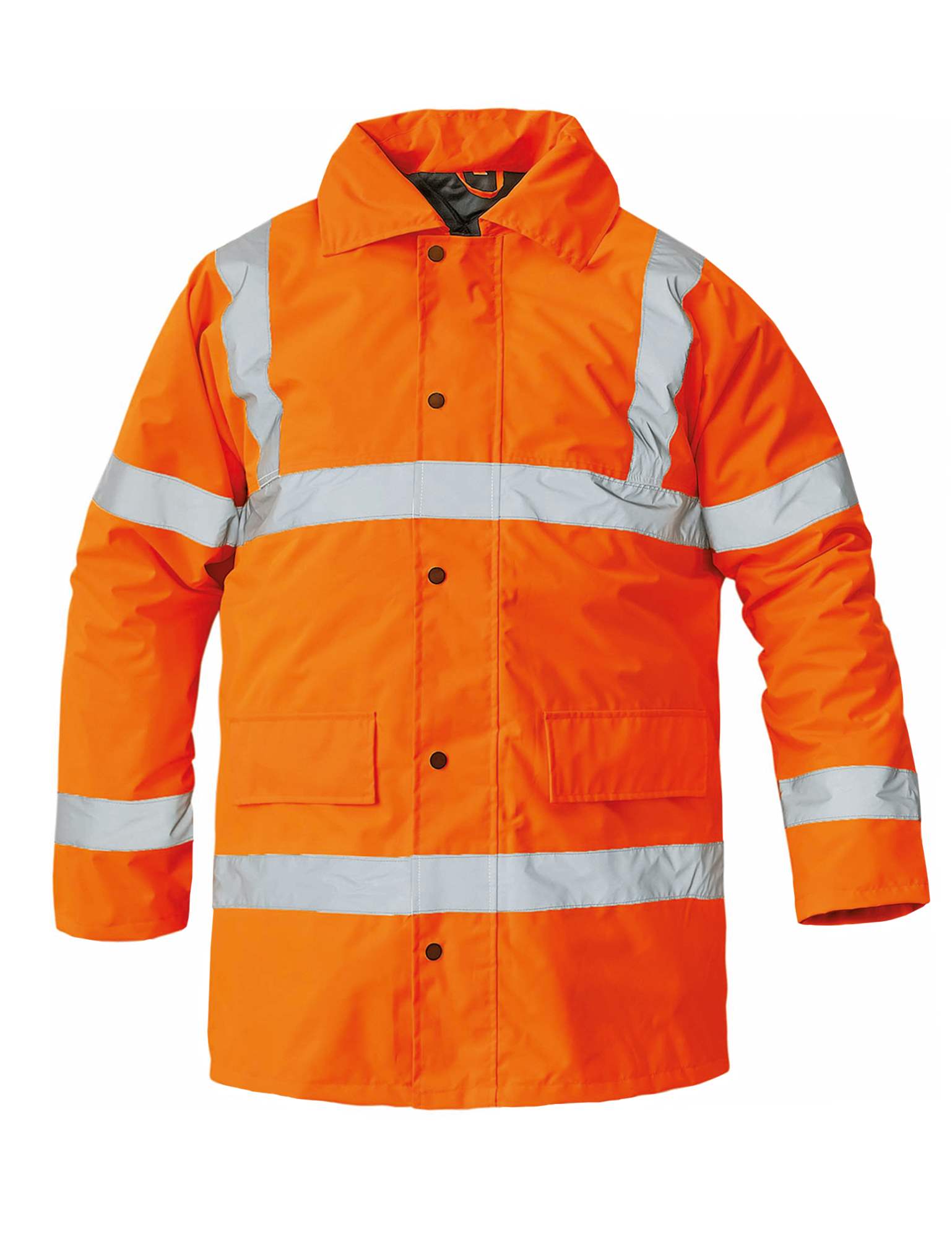 Aντιανεμικό, αδιάβροχο, διαπνέον, με μόνωση κατά του ψύχους. Κουκούλα ρυθμιζόμενη με κορδόνι που μαζεύει στο γιακά. Κλείνει μπροστά με φερμουάρ καλυπτόμενο από πατιλέτα που σφραγίζει με τρουκς. Δύο εξωτερικές τσέπες στη μέση που κλείνουν με καπάκι και velcro. Δύο εσωτερικές τσέπες. Εσωτερικές πλεκτές ελαστικές μανσέτες για αποτροπή ανύψωσης των μανικιών. Ανακλαστικές ταινίες 3Μ. 300D |190gsm. 100% πολυεστέρας με επικάλυψη πολυουρεθάνης. 100% πολυεστερική φόδρα. Βάτα καπιτονέ.