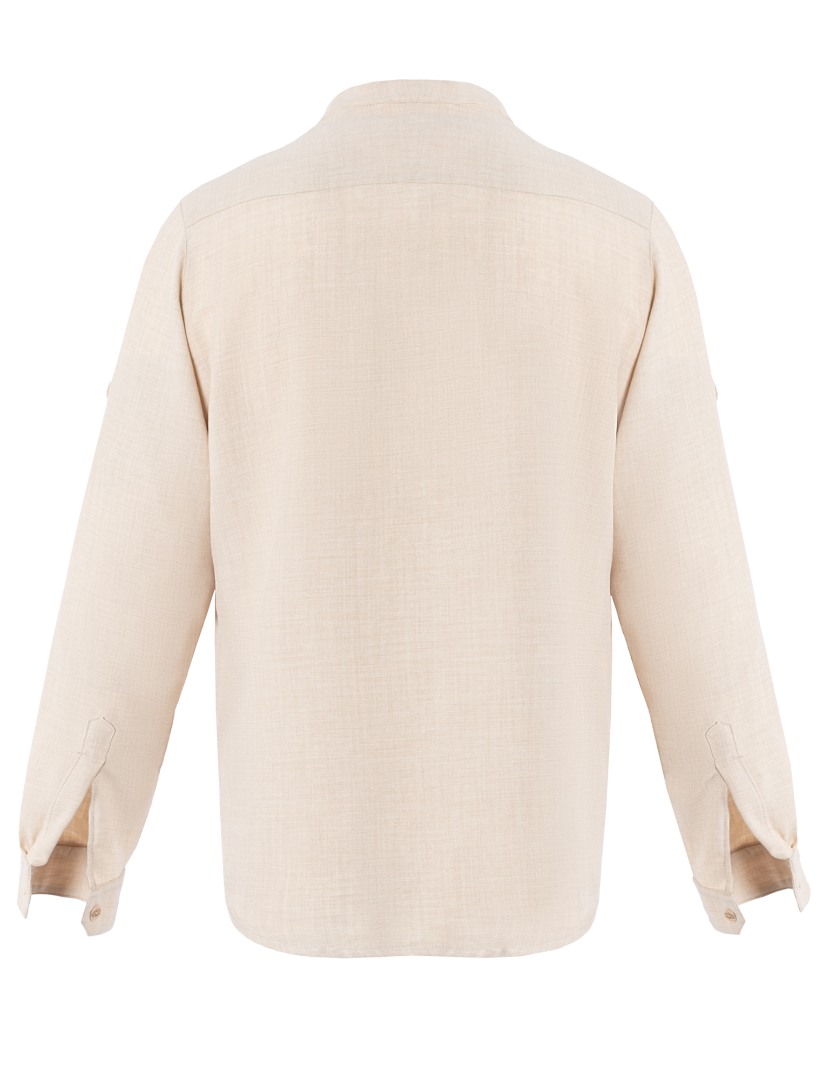 - Κλείσιμο με έξι κουμπιά μπροστά και αναδιπλούμενα μανίκια με μανσέτα.